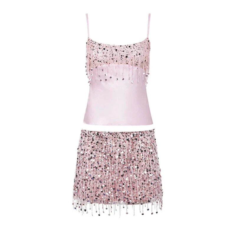 Entdecken Sie den ultimativen Sommerlook mit unserem Pailletten-Tassel Set, das perfekt für Strandtage und Festivals geeignet ist. Dieses Set kombiniert Glanz und Stil, um Ihnen ein selbstbewusstes und modisches Auftreten zu verleihen. Die funkelnden Pailletten und die verspielten Fransen sorgen für einen aufregenden Look, der alle Blicke auf sich zieht.
