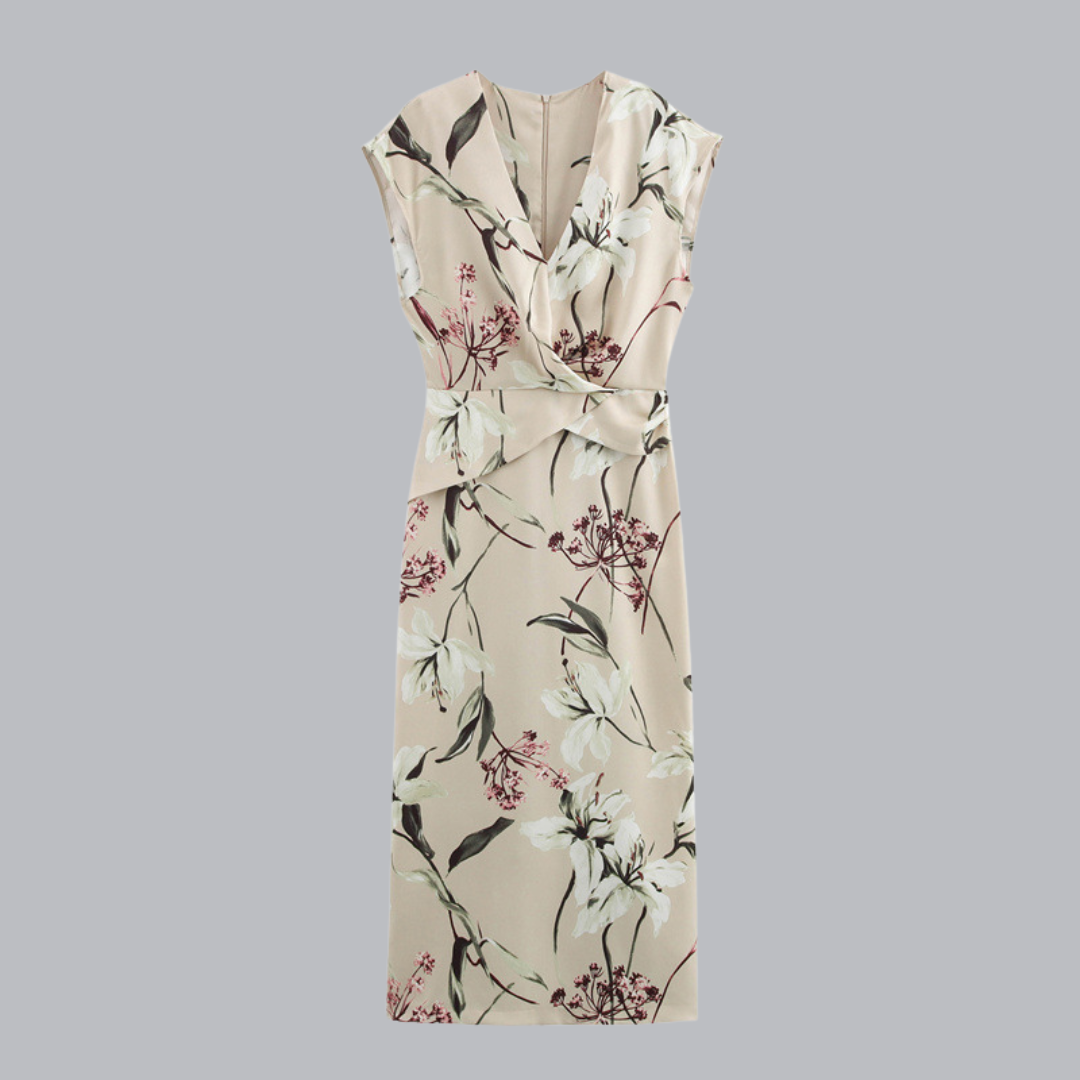 Wickeloptik am Dekolleté – Verleiht dem Kleid eine feminine Linie.