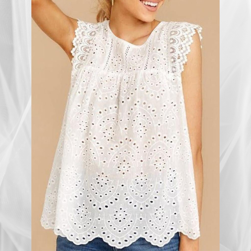 Feiern Sie den Sommer mit der stilvollen Avelena ärmellosen Spitzen-Crochet-Bluse, ideal für Urlaubsreisen oder entspannte Tage. Dieses lockere, im Boho-Stil gehaltene Oberteil besticht durch kunstvolle Häkelspitzen-Details, die Ihrem Kleiderschrank an warmen Tagen eine exquisite Note verleihen.