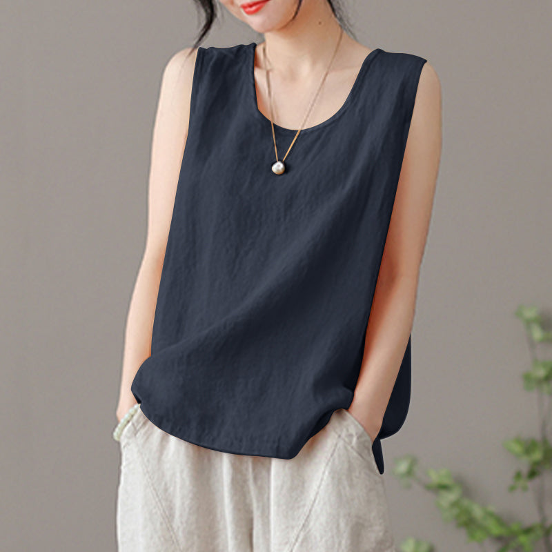 Avelena | Ärmelloses O-Ausschnitt Arbeitshemd