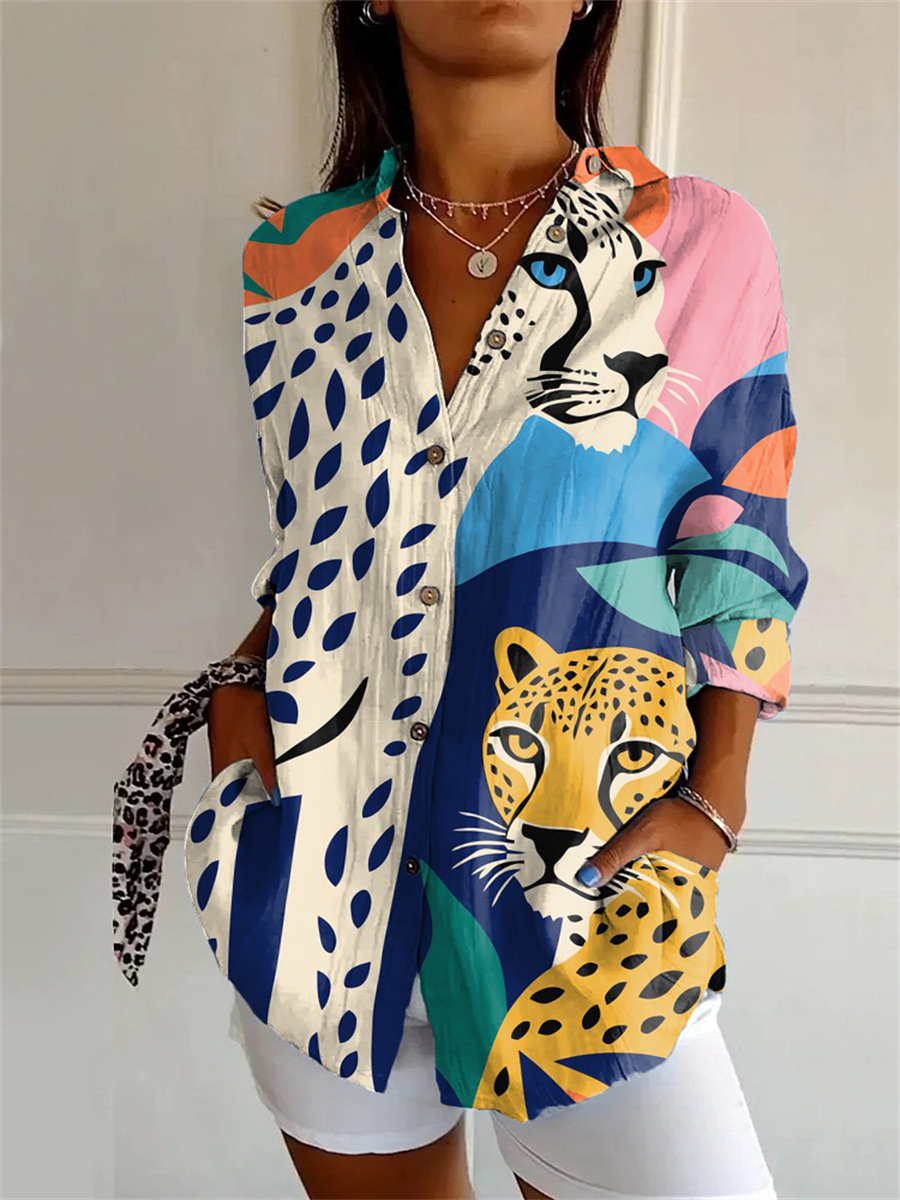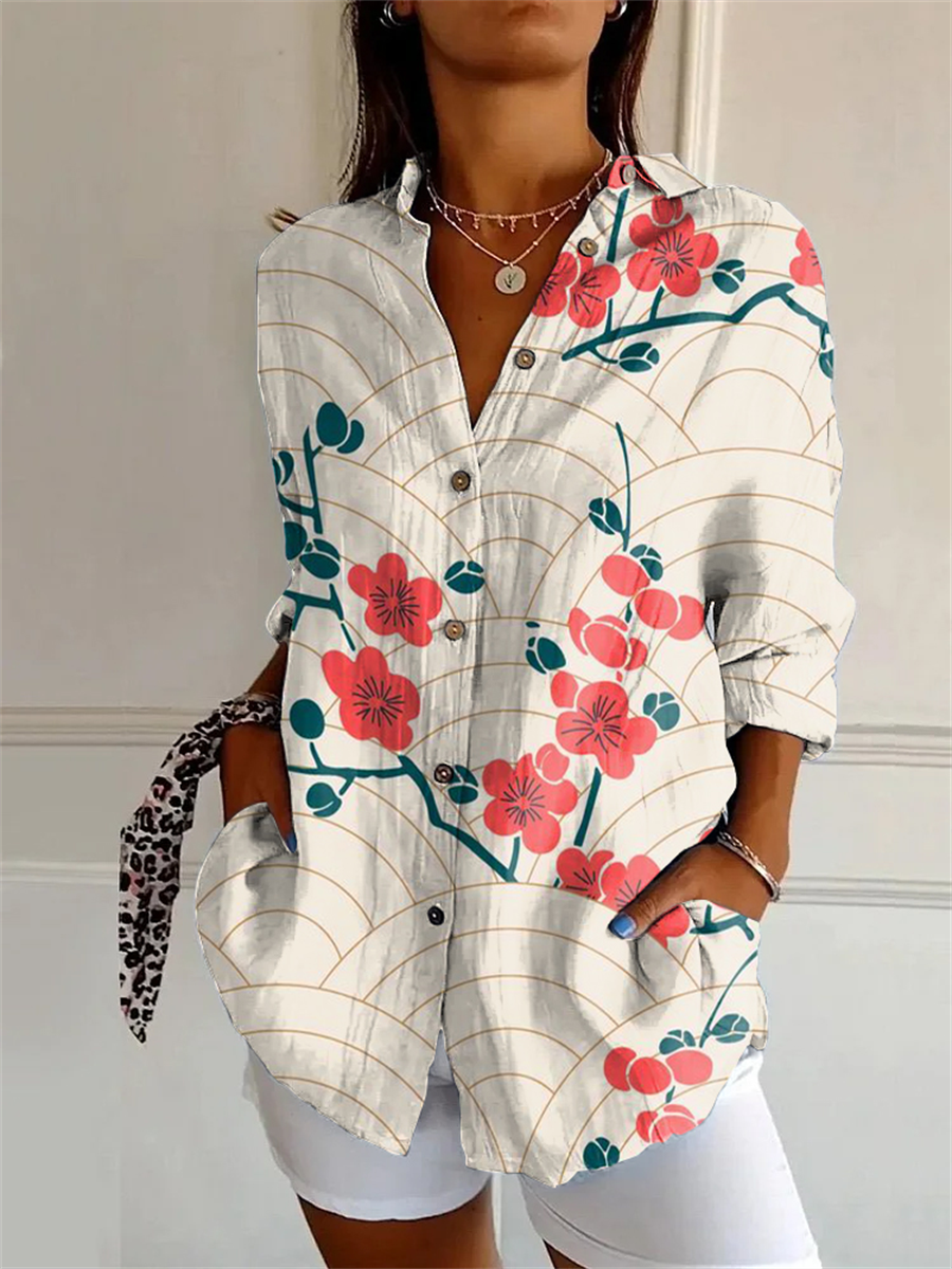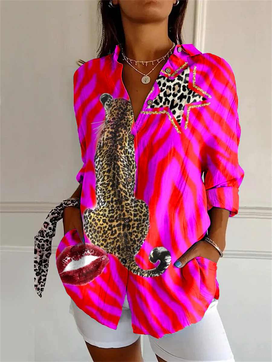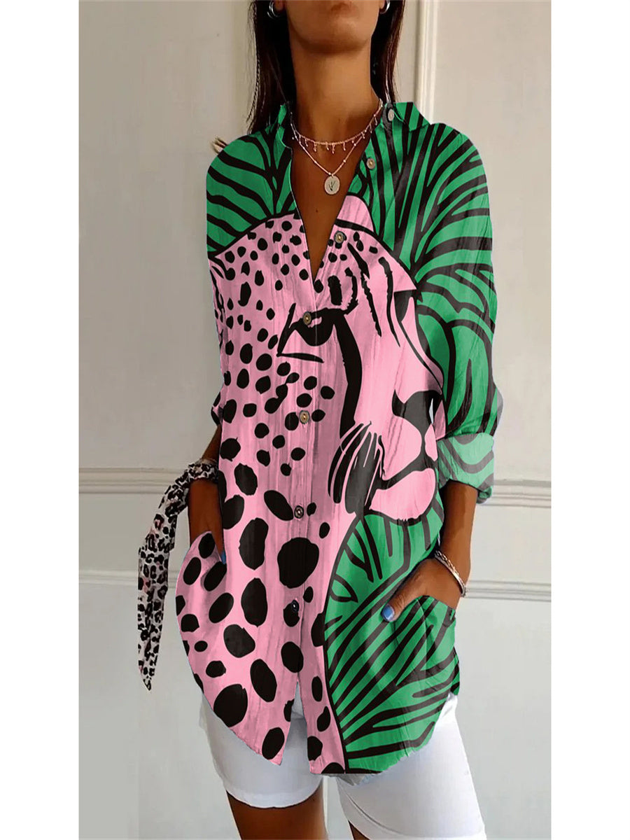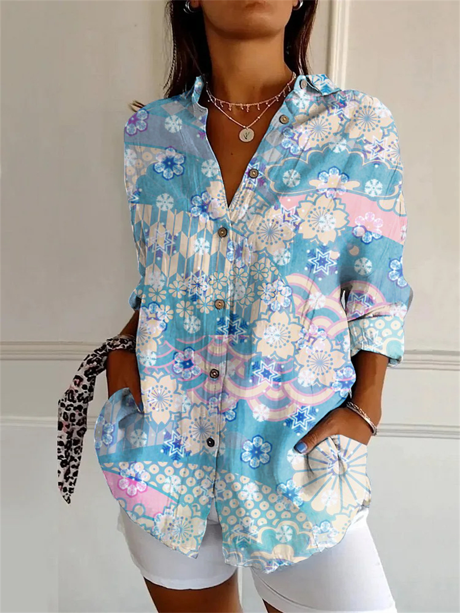 Avelena | Damen Sommer 3D Muster Gedrucktes Langarmhemd