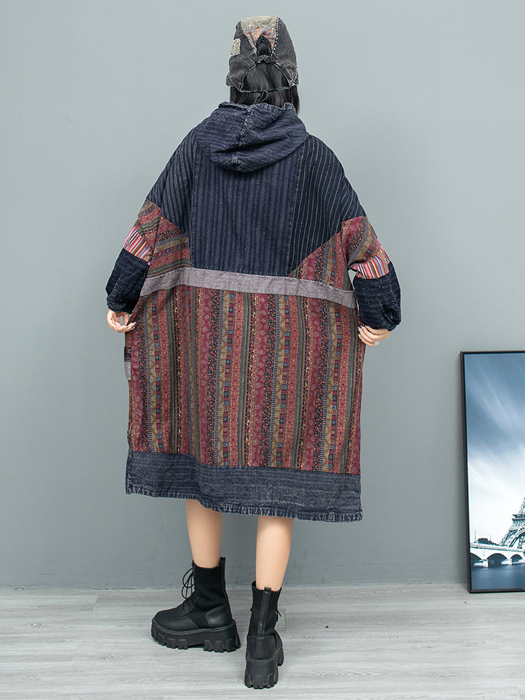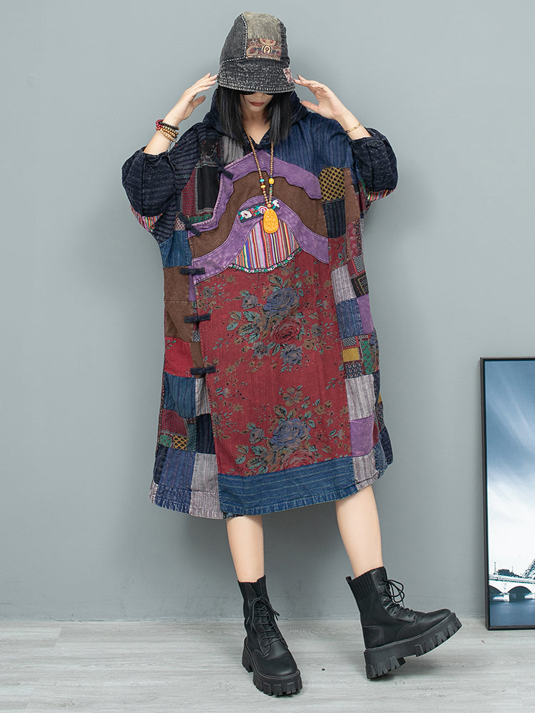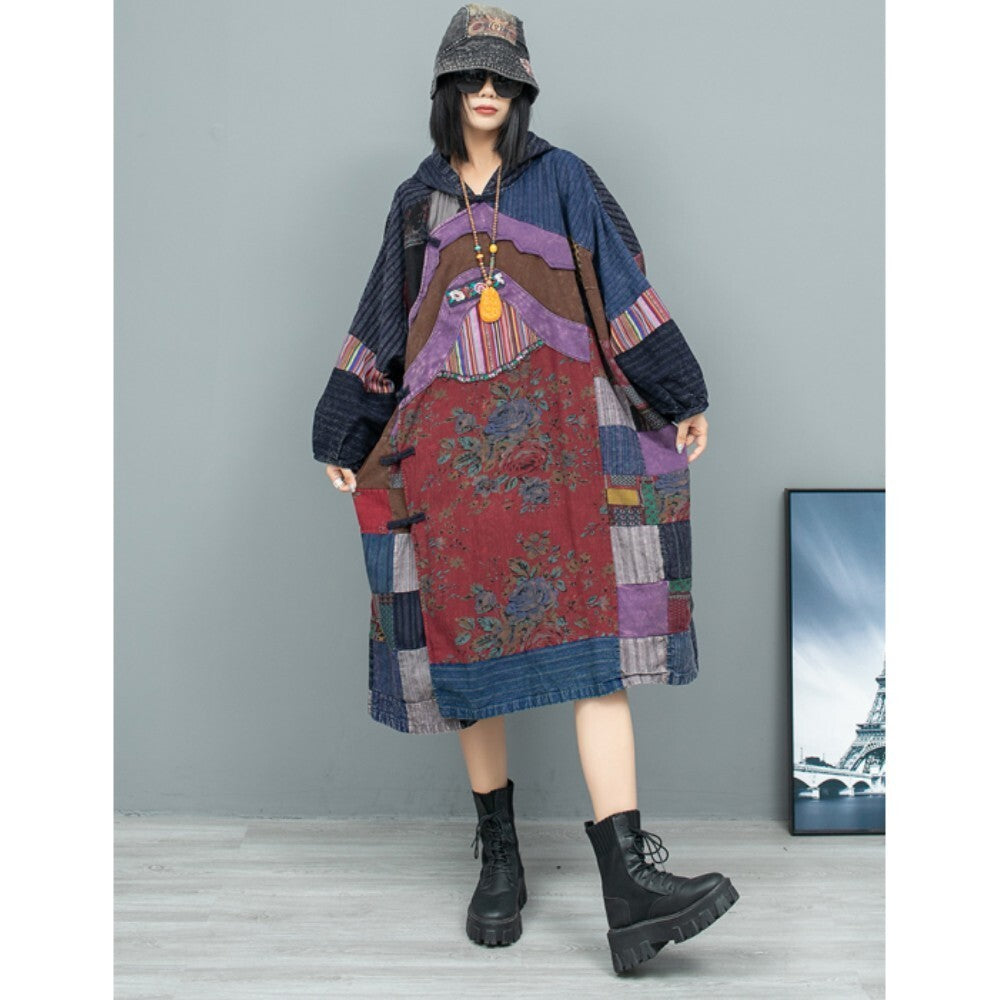 Avelena | Ethnische Kapuzenlangarmherbstkleid