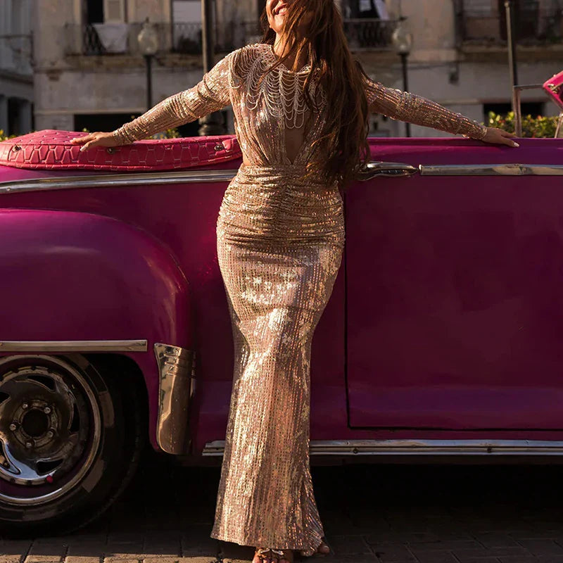 Avelena | Herbst Glänzendes Paillettenabendkleid