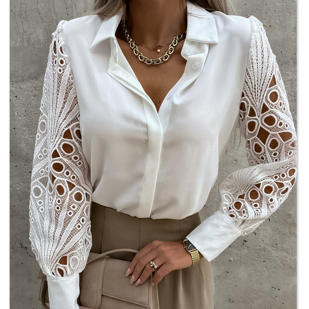 Treten Sie mit der Avelena V-Ausschnitt Bluse mit Spitzenärmeln in den Frühling und Sommer ein, die eine wunderbare Kombination aus Anmut und Stil bietet. Dieses wunderschöne Oberteil besitzt einen schmeichelhaften V-Ausschnitt und zarte Spitzenärmel mit kunstvollen Ausschnittdetails, die es ideal für Bürolooks oder formellere Anlässe machen.