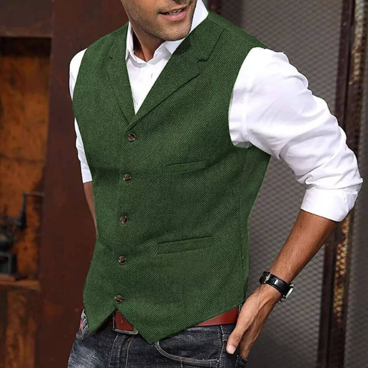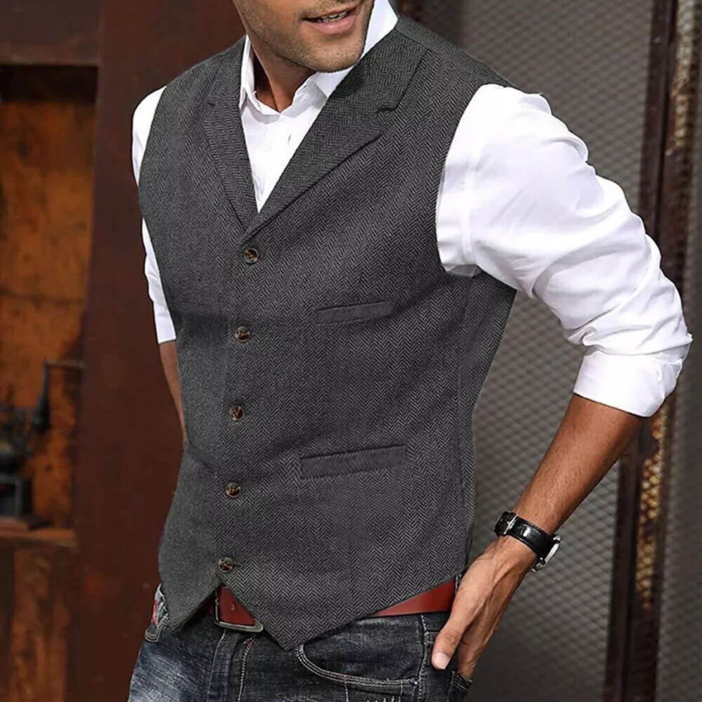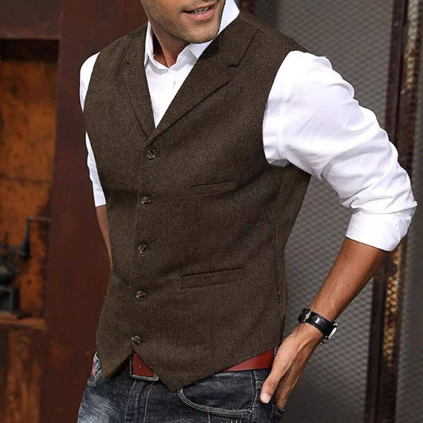 Bringen Sie Ihr Outfit mit der Ben™ Vintage Weste auf das nächste Level. Diese Weste ist für Männer gemacht, die klassischen Stil mit einem modernen Touch schätzen. Sie bietet Komfort und Langlebigkeit, perfekt für elegante Anlässe oder legere Outfits.