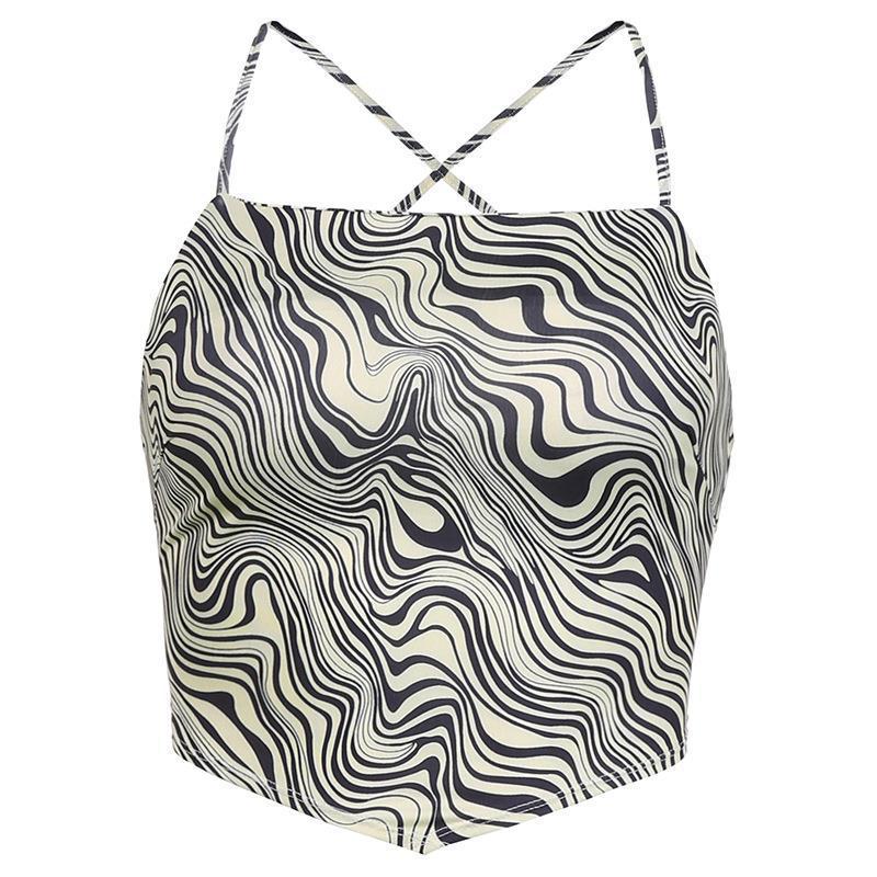 Ziehen Sie die Aufmerksamkeit mit einem Design auf sich, das hervorsticht. Carla - Einzigartiges Wellenmuster-Top bringt frische Energie in Ihre Garderobe mit ihrem auffälligen Wellenmuster. Ob Sie mit Freundinnen ausgehen oder Ihren Alltagslook aufwerten möchten, kombiniert dieses Top Komfort und künstlerischen Ausdruck auf die schönste Weise.