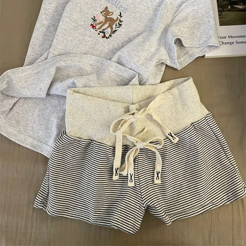 Damen Hochtaillierte Gestreifte Lounge-Shorts mit Verstellbarem Kordelzug Heidi-Mode