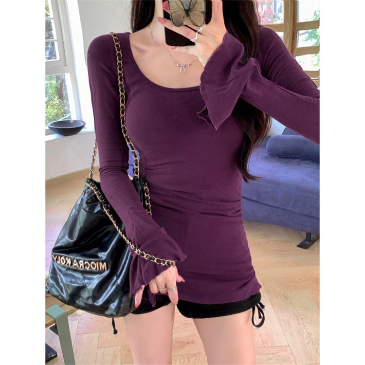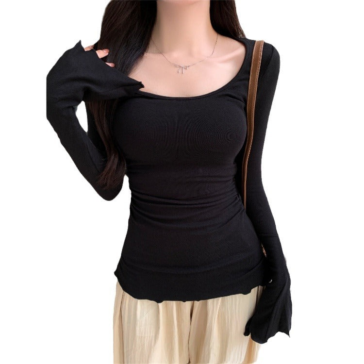 Erleben Sie die ideale Verbindung von Stil und Bequemlichkeit mit unserem Langarm-Fitted-Top, das anmutige, fließende Manschetten bietet. Aus erstklassigem, weichem Material gefertigt, sorgt dieses Top für ein angenehmes Tragegefühl und bewahrt gleichzeitig eine figurbetonte Silhouette, die allen Körpertypen schmeichelt.