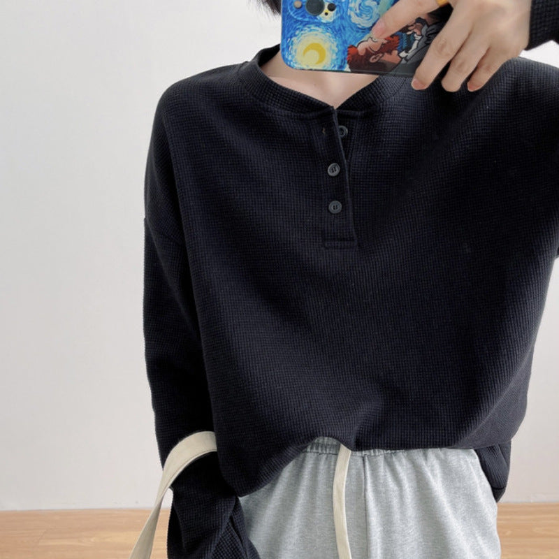 Dieses Damen Langarm-Waffelstrickshirt vereint stilvolles Design und Bequemlichkeit, ideal für den Alltag. Die besondere Waffelstruktur fügt eine elegante Note hinzu und bietet zugleich atmungsaktiven Komfort. Gefertigt aus hochwertigen Materialien, besitzt dieses Shirt ein Knopfdetail, das seine vielseitige Anziehungskraft unterstreicht.