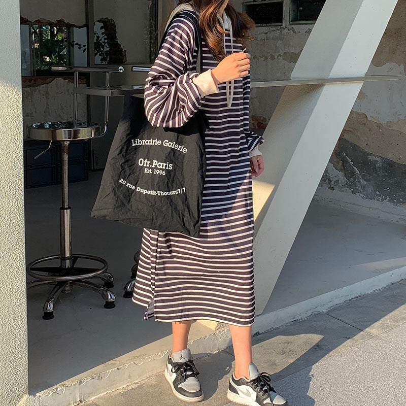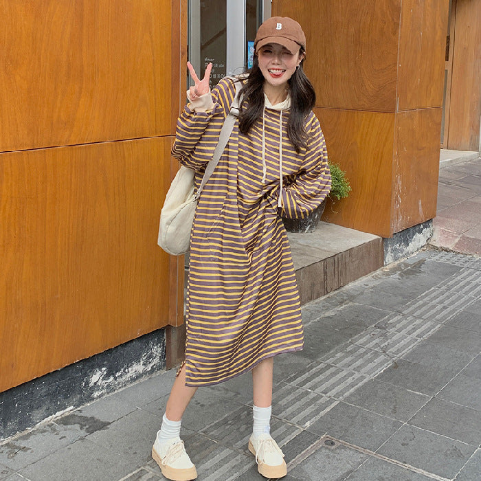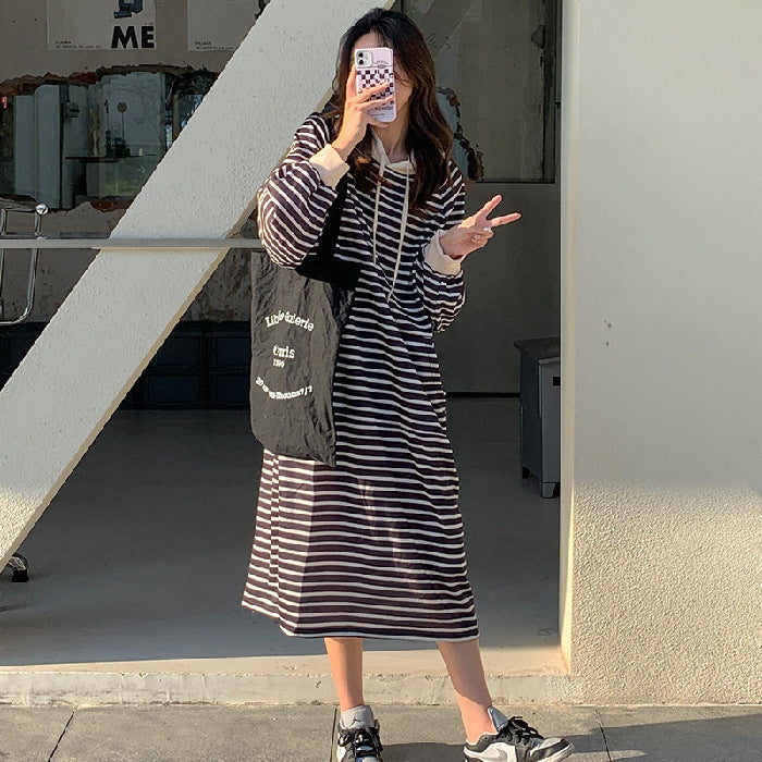 Entdecken Sie unser modisches, lässiges Kapuzenstreifenkleid