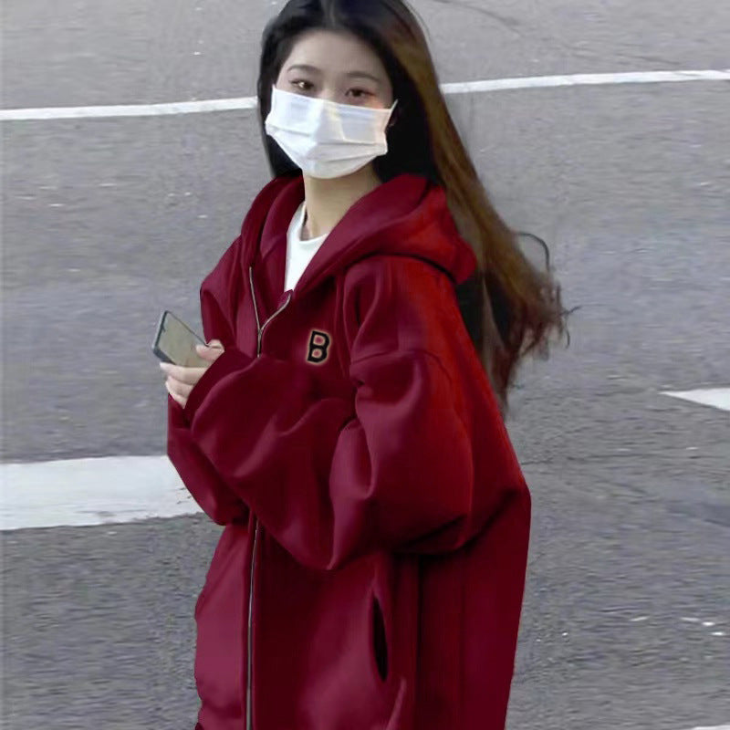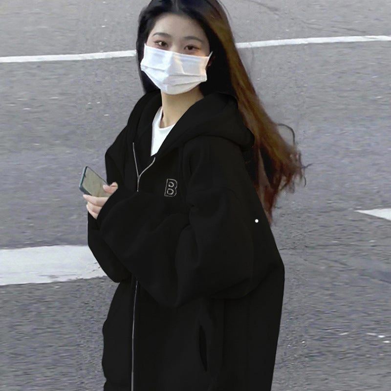 Damen Oversized Zip-Up Hoodie mit Kängurutaschen und stylischer Bestickung Heidi-Mode