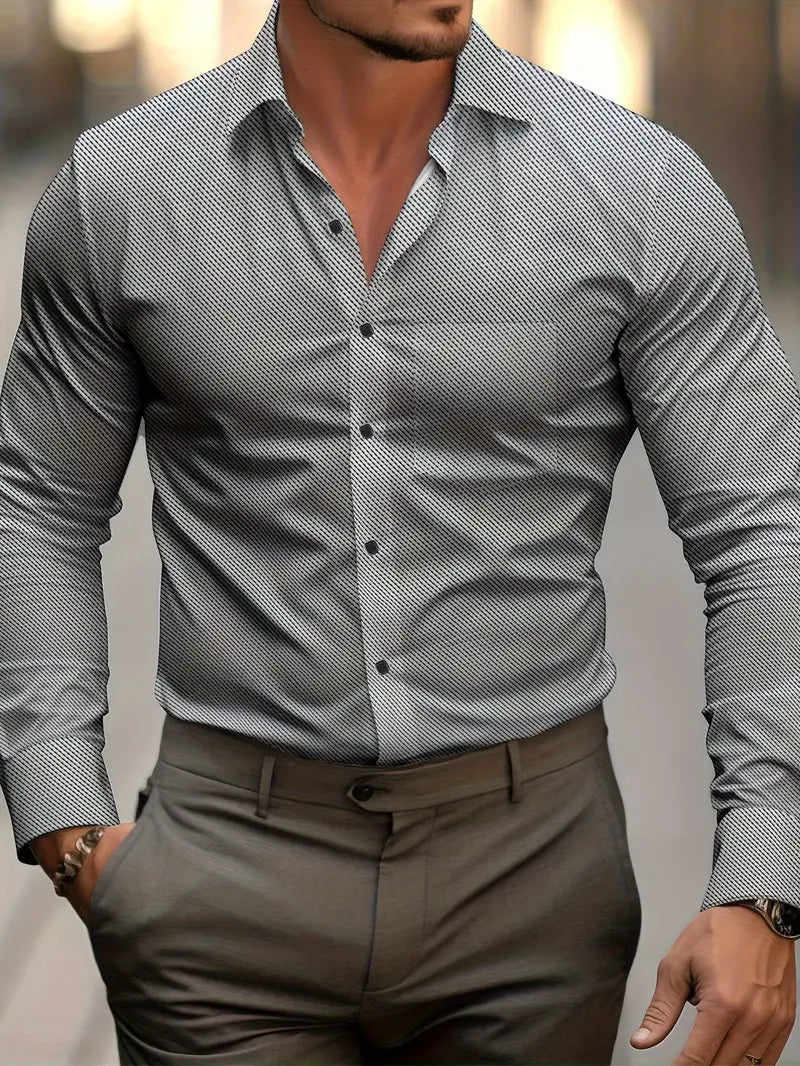 Erweitern Sie Ihre professionelle Garderobe mit unserem Formal Long Sleeve Shirt für Herren, das sowohl Stil als auch Komfort bietet. Dieses Hemd aus hochwertiger Baumwolle bietet einen klaren, sauberen Look, der perfekt für Geschäftstreffen, Veranstaltungen oder formelle Anlässe ist. Das klassische Button-Down-Design sorgt zusammen mit der taillierten Passform für eine scharfe, polierte Silhouette. Das atmungsaktive Material sorgt den ganzen Tag über für ein angenehmes Tragegefühl, während der adrette Kragen und die geknöpften Manschetten Ihrem Ensemble ein elegantes Finish verleihen.