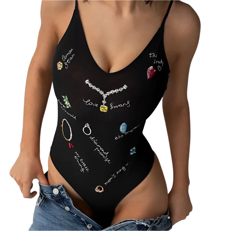 Treten Sie mit Stil in die Sommersaison ein mit dem Elsa - Kreatives Schmuckmotiv Badeanzug. Dieser Badeanzug ist für diejenigen entworfen, die am Strand oder Pool ein mutiges Statement setzen möchten. Mit einem einzigartigen Schmuckmotiv auf dem Stoff umhüllt er Ihren Körper in einer raffinierten und modernen Atmosphäre. Perfekt, um sich in der Sonne zu entspannen oder Wellen im Wasser zu schlagen.