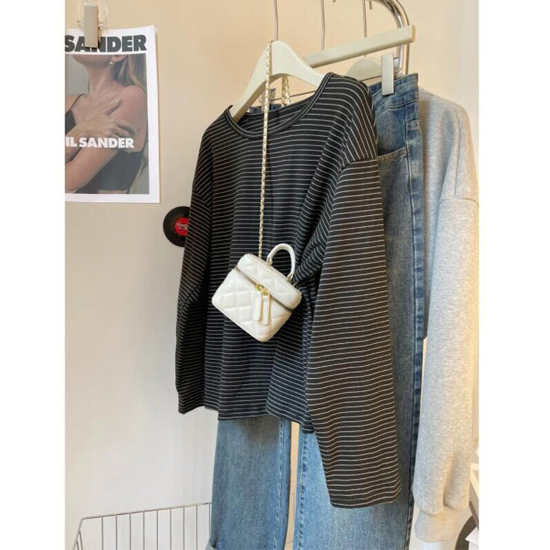 Femme Entspanntes Fit Gestreiftes Langarmtop Heidi-Mode