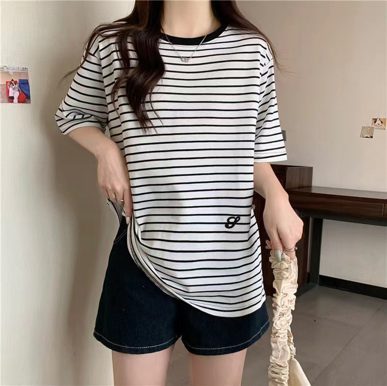 Femme Entspanntes Passform Gestreiftes T-Shirt Heidi-Mode