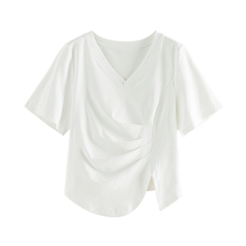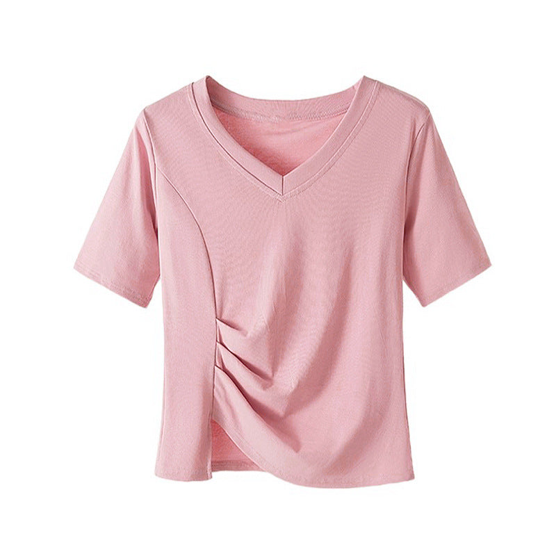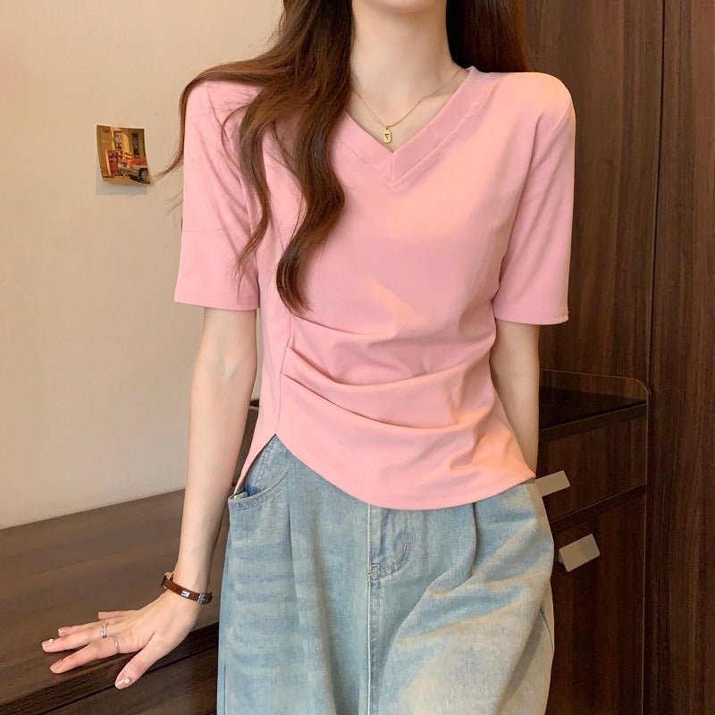Femme Entspanntes Passform Seitlich-Gerafftes V-Ausschnitt Oberteil Heidi-Mode