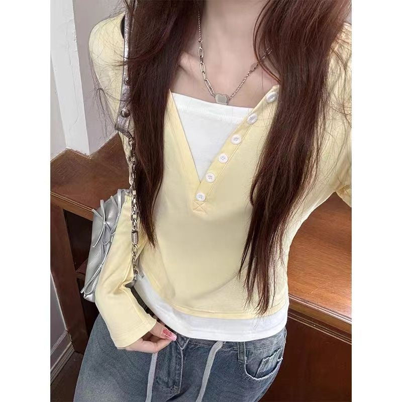 Verbessern Sie Ihren lässigen Stil mit unserem geschichteten V-Ausschnitt-Button-Up-Top