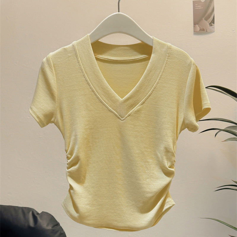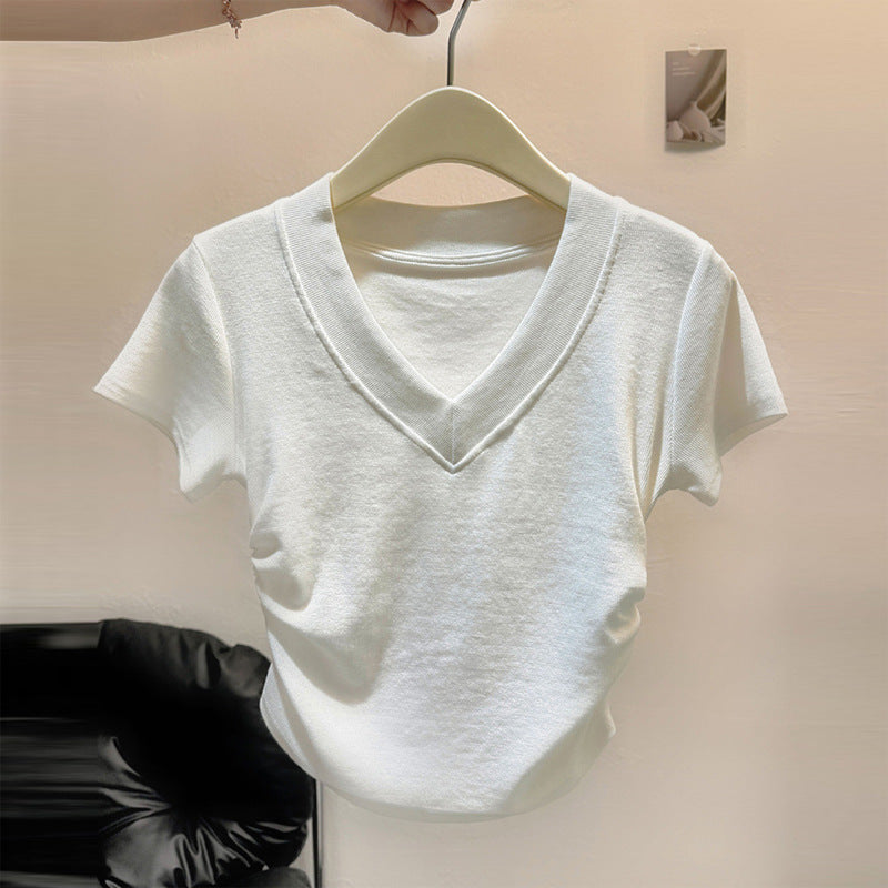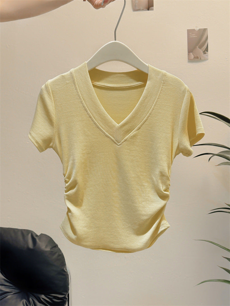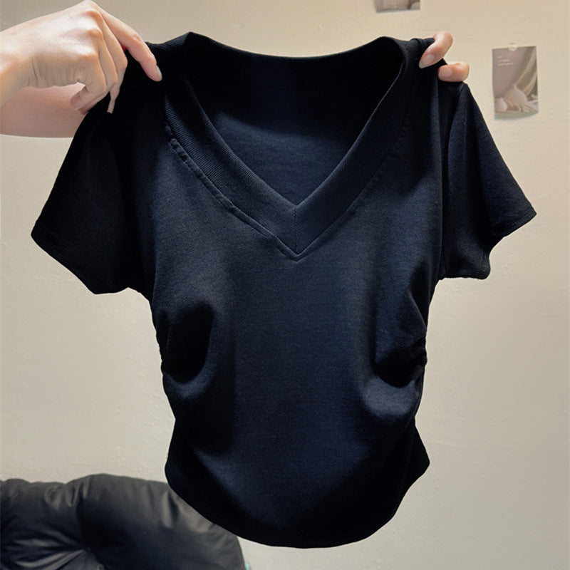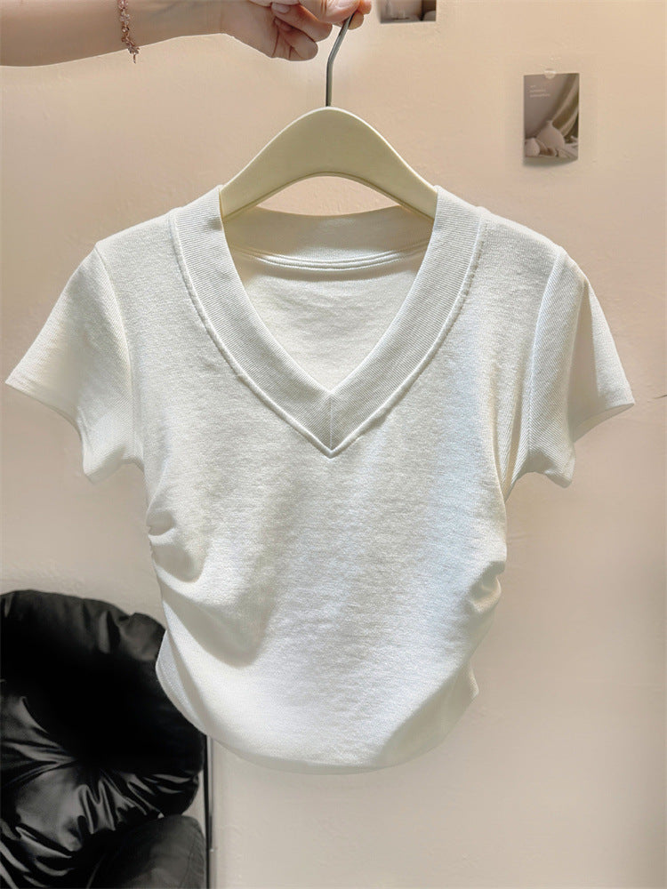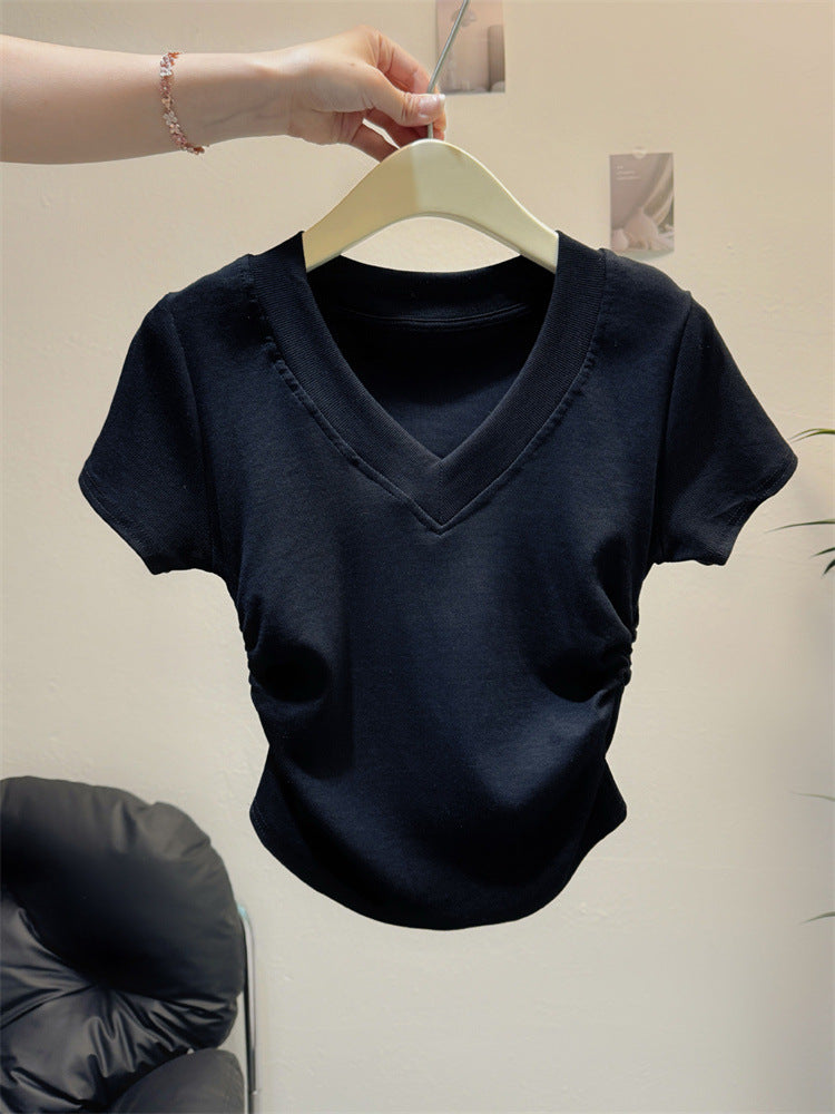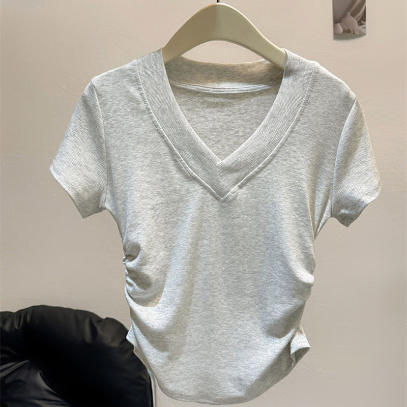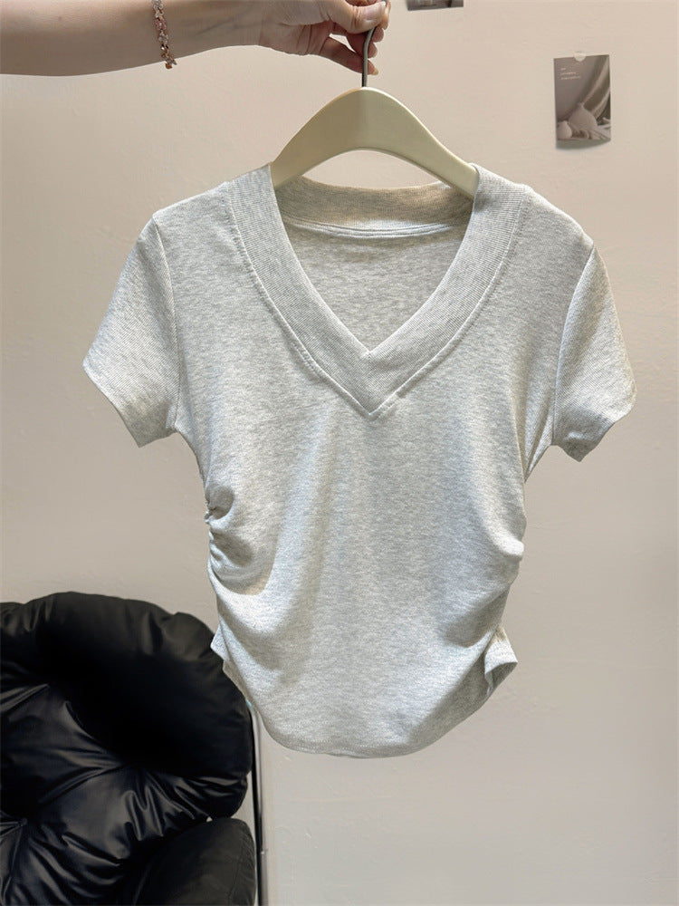 Vorstellung des idealen kurzärmeligen gerafften V-Ausschnittoberteils