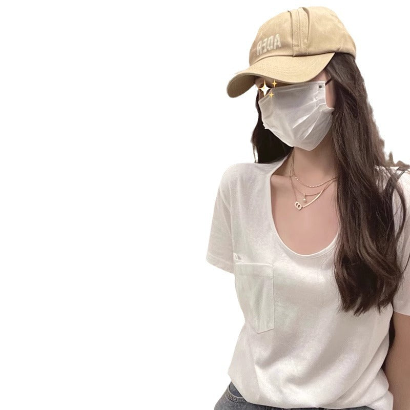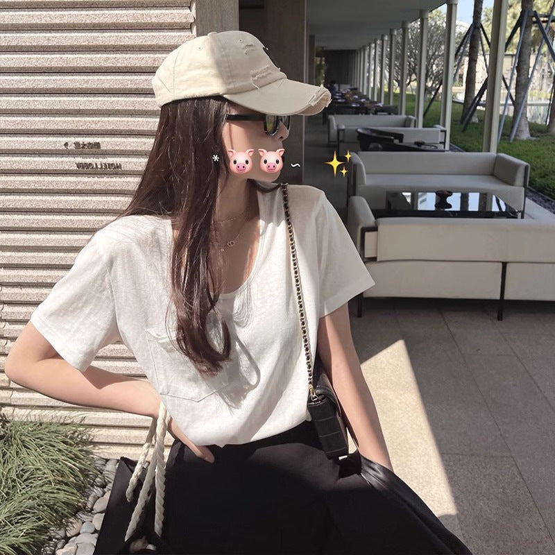 Unbeschwert elegantes Kurzarm-T-Shirt mit lässigem Schnitt und Tasche