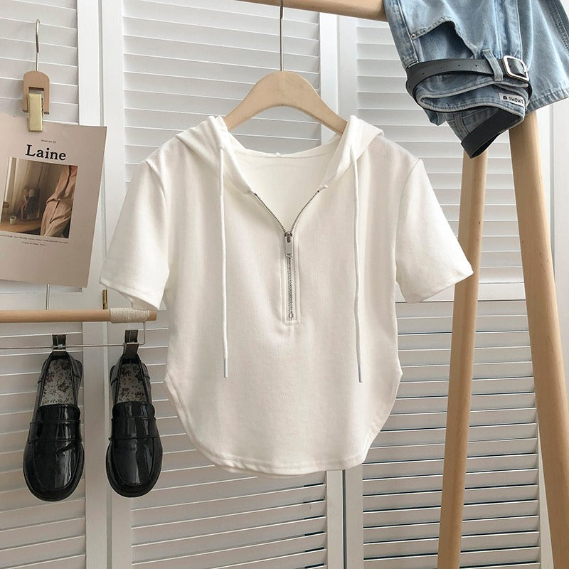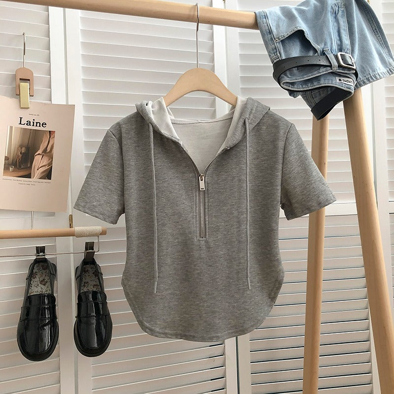 Femme Leichtgewicht Halb-Reißverschluss Hoodie mit kurzen Ärmeln Heidi-Mode