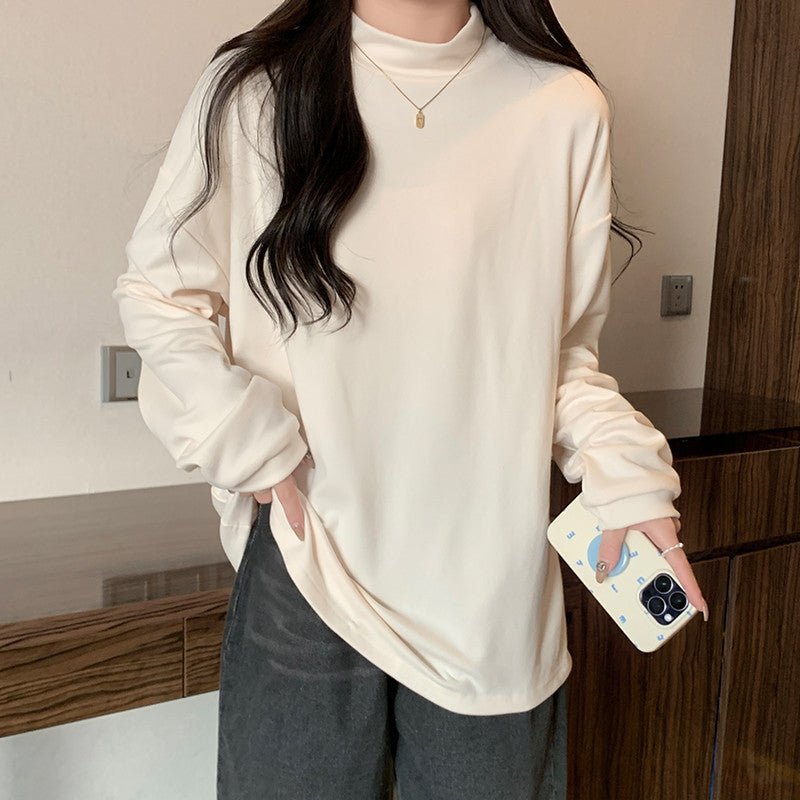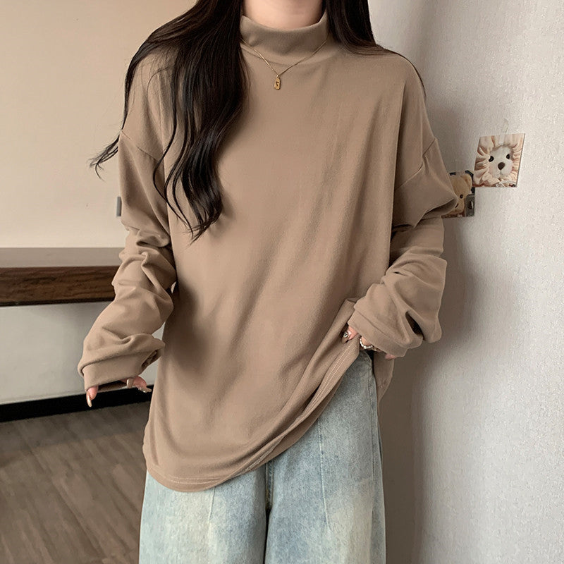 Femme Leichtgewicht Stehkragen Langarmtop Heidi-Mode