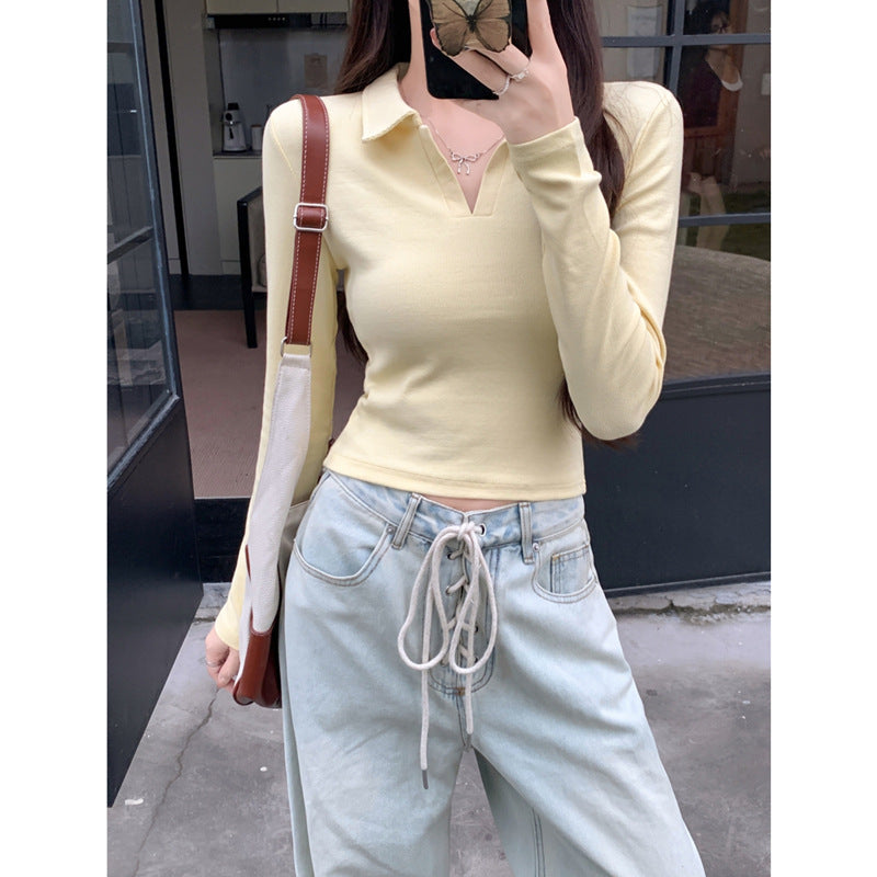 Femme Leichtgewichtig Langarm Polo Top Heidi-Mode