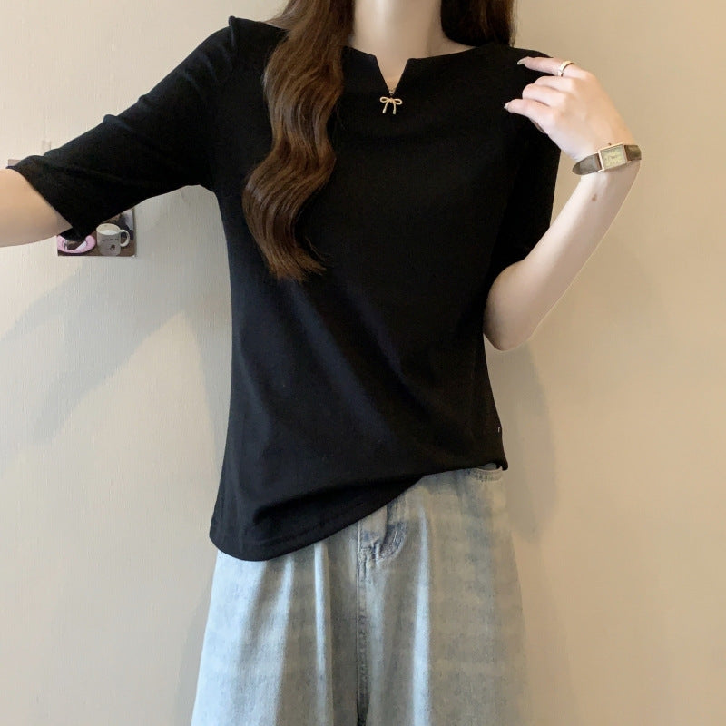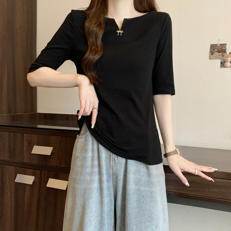 Femme Modern V-Ausschnitt Ikonisches T-Shirt Heidi-Mode