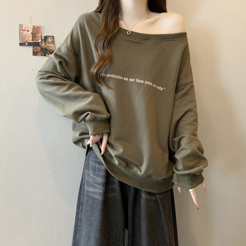 Bereichern Sie Ihre lässige Auswahl mit diesem modischen Off-Shoulder-Grafik-Sweatshirt