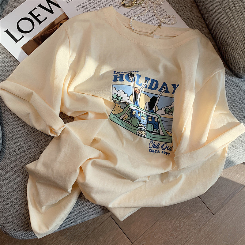 - Verspieltes Grafikdesign: Mit einer lebhaften, kreativen Illustration bringt dieses T-Shirt eine fröhliche Note in Ihr Outfit und ist perfekt für entspannte Ausflüge und lässige Wochenenden.