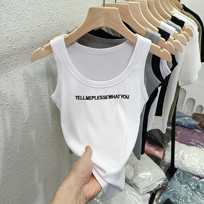 Stylisches Rippen-Text-Grafik-Tanktop für jede Sommergarderobe