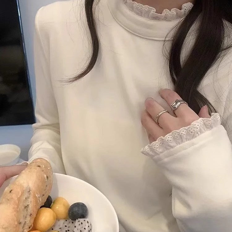 Bringen Sie frischen Wind in Ihren Look mit unserem Rüschenshirt mit Stehkragen und langen Ärmeln