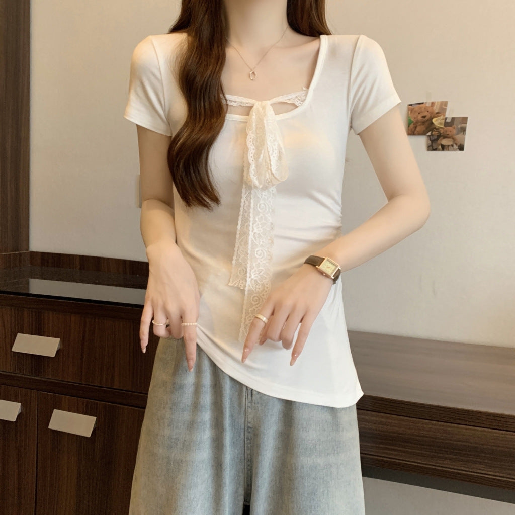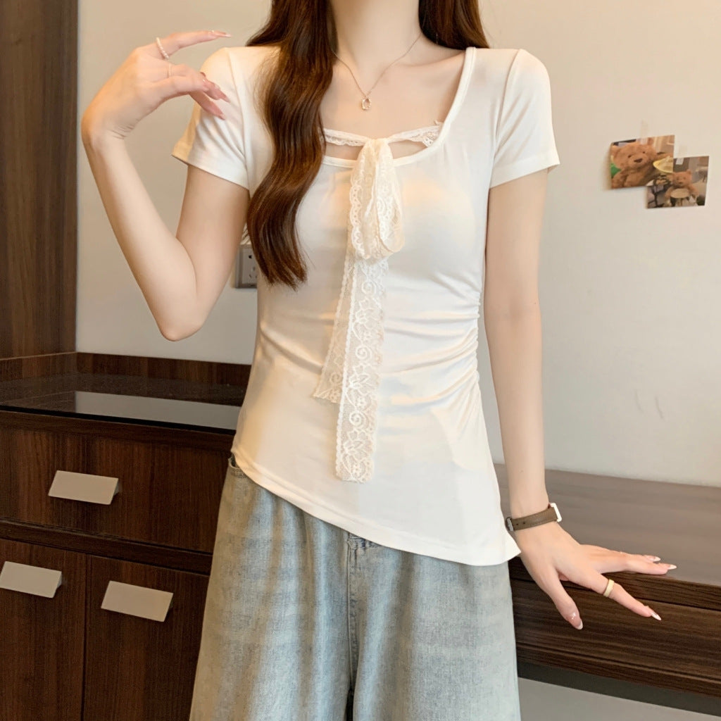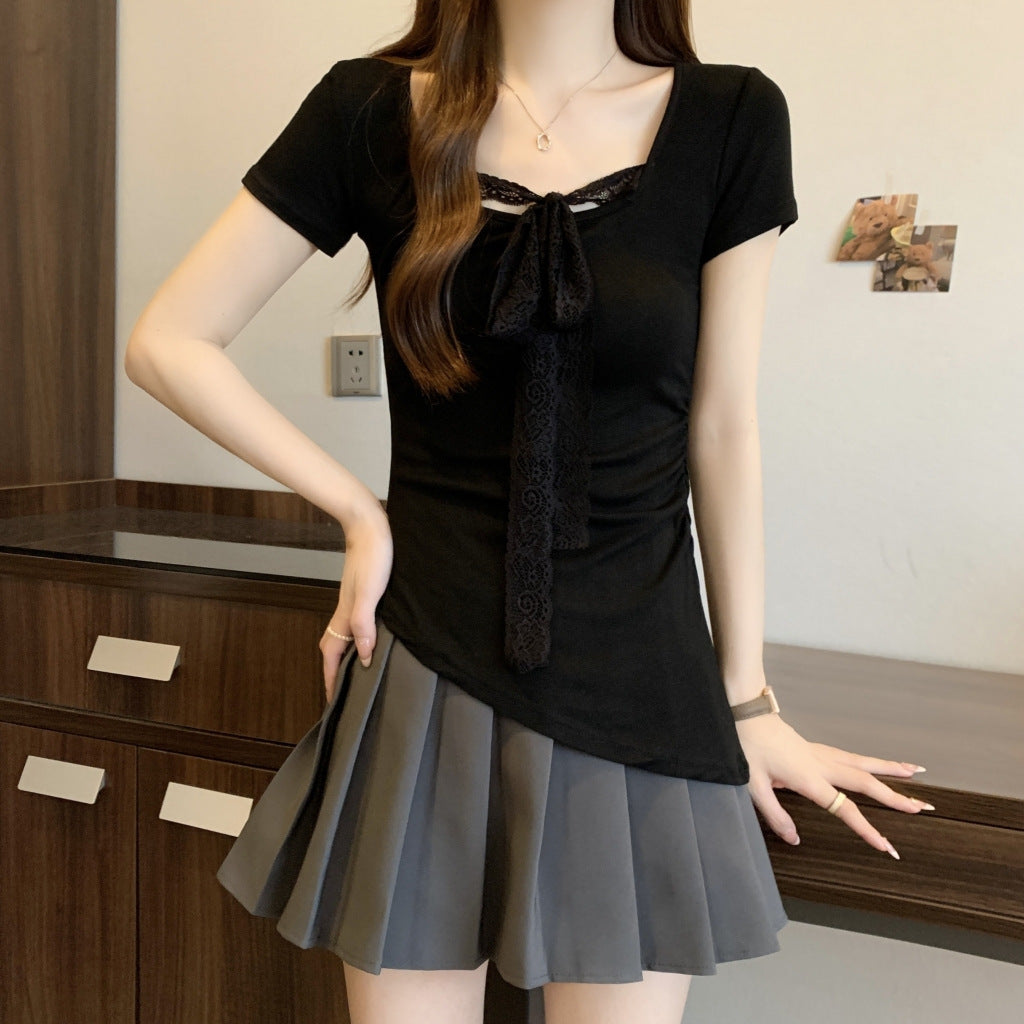 Femme Spitzen Detail Bindefront Oberteil Heidi-Mode