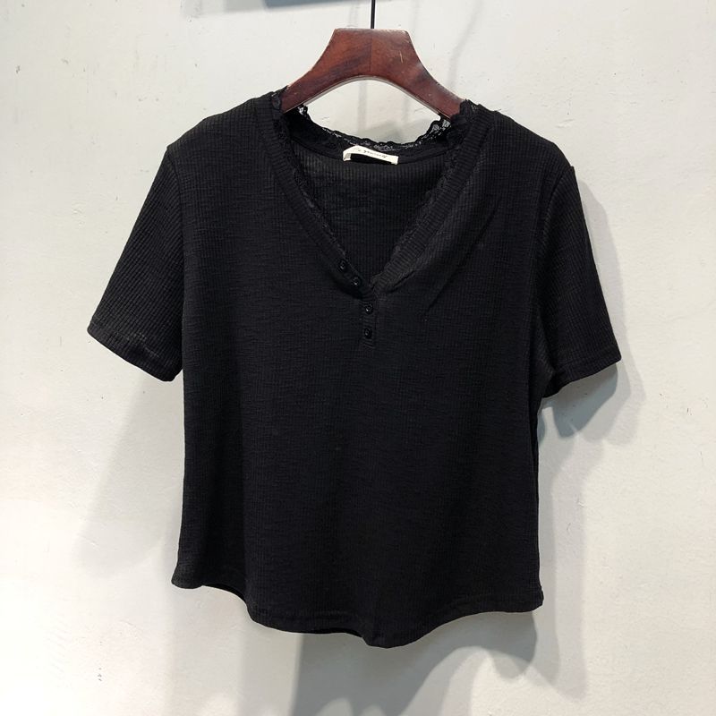 Verleihen Sie Ihrem Freizeitlook mit unserem stilvollen V-Ausschnitt Baumwoll-T-Shirt mit Spitzenbesatz eine frische Note. Dieses modische und komfortable Top wurde für den täglichen Gebrauch entwickelt und ist die ideale Ergänzung für Ihre Garderobe.