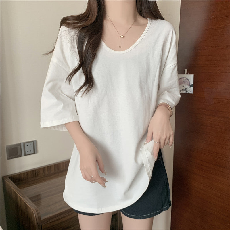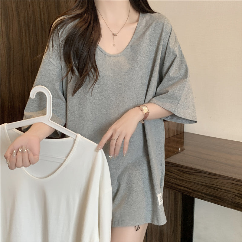 Verleihen Sie Ihrer lässigen Garderobe einen Hauch von Stil mit unserem Femme großzügigen V-Ausschnitt Baumwoll-T-Shirt, das speziell für höchsten Komfort und modischen Ausdruck konzipiert wurde. Gefertigt aus 100 % atmungsaktiver Baumwolle, ist dieses T-Shirt ideal für den täglichen Gebrauch, zum Entspannen oder zum Layering.