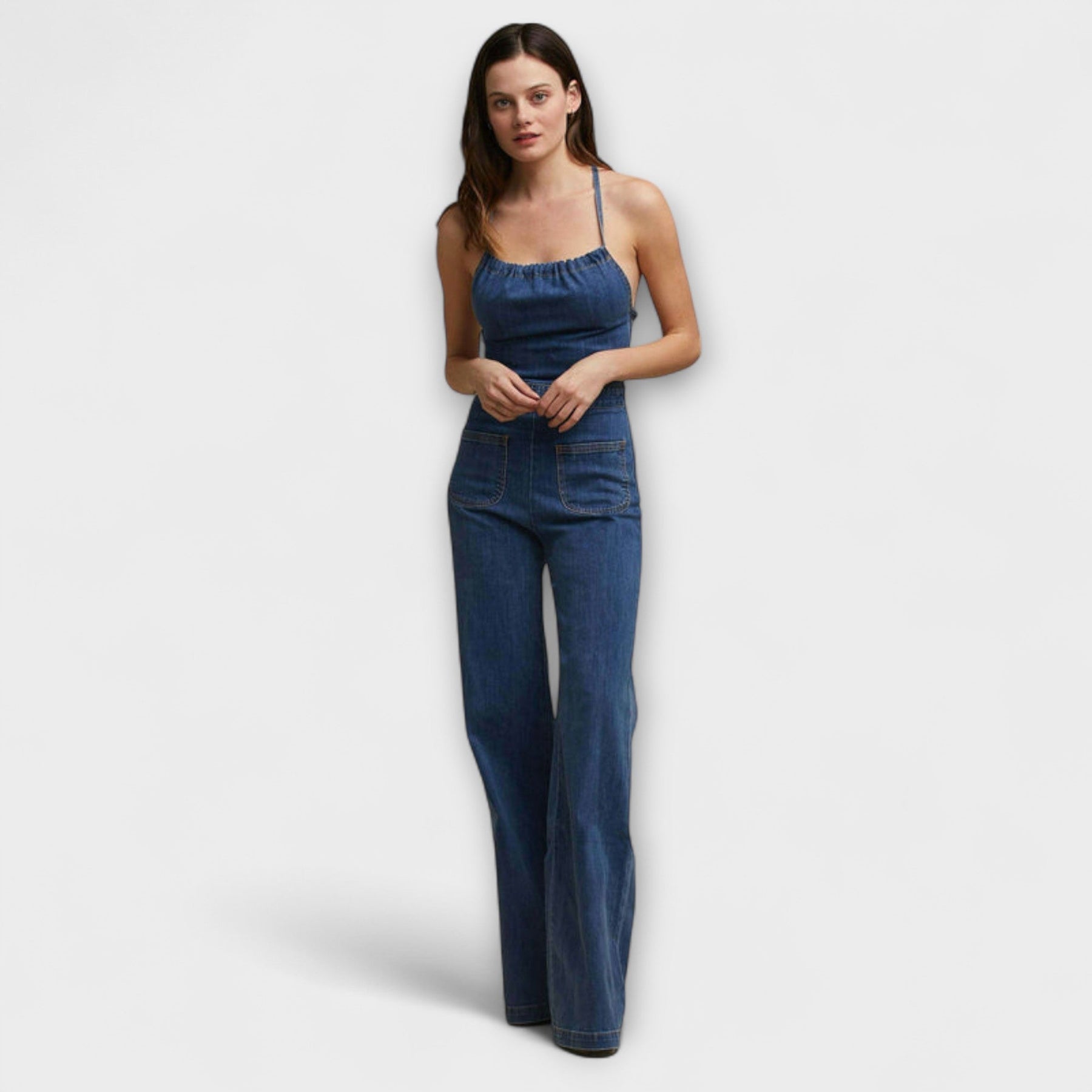 Gabriella - Denim-Jumpsuit mit weitem Bein und Bindeband im Rücken