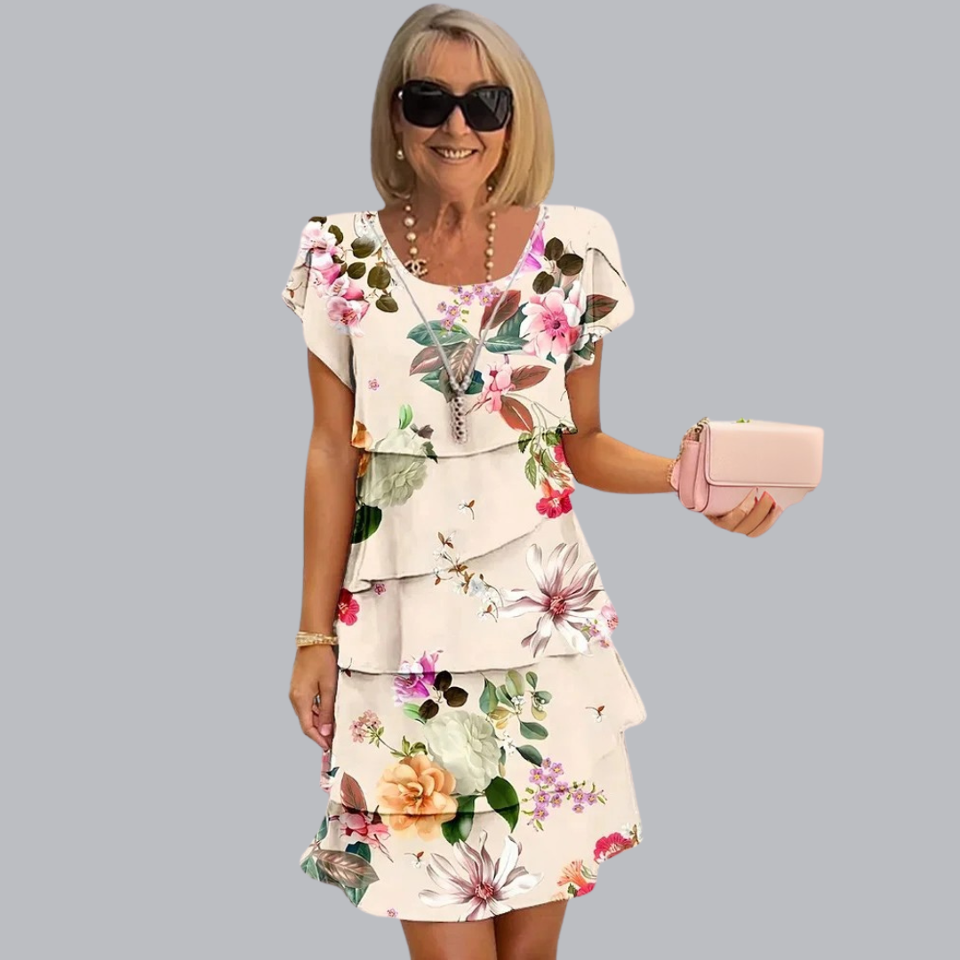 Florale Eleganz: Lebendige Blumen auf einem sanften Hintergrund schaffen einen frischen, femininen Look für sonnige Tage.