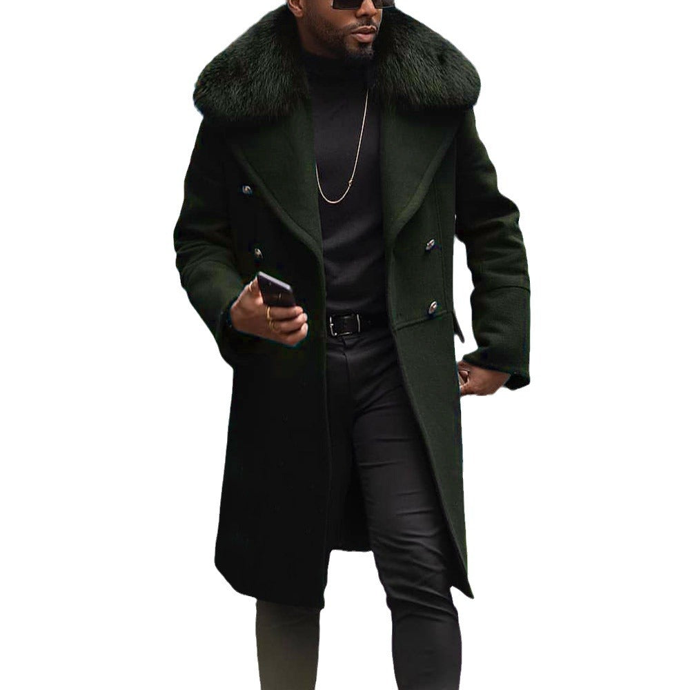 Herren eleganter Wollmantel mit luxuriösem Kunstfellkragen Aliams