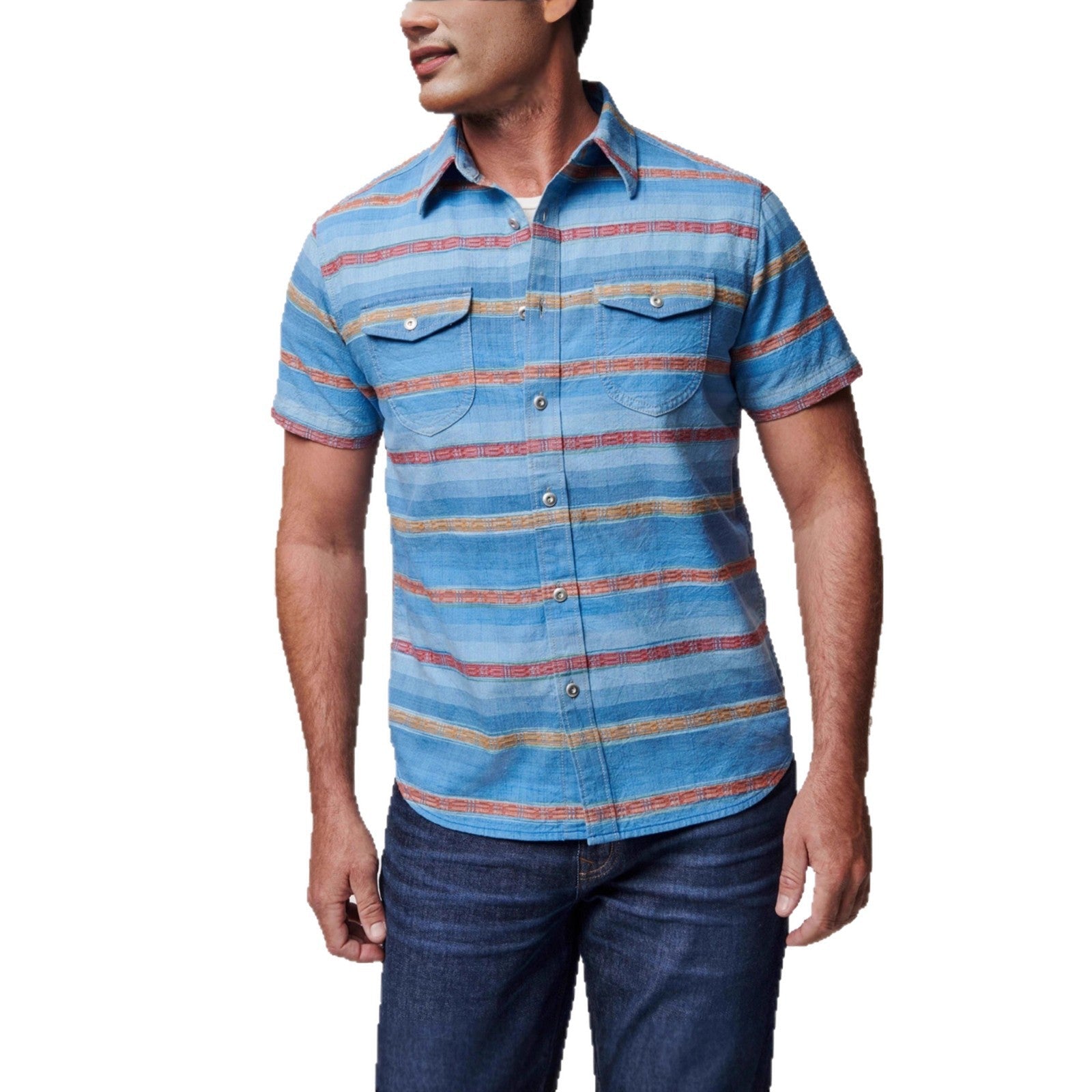 Herren Kurzarm-Hemd mit gestreiftem Design und zwei Brusttaschen Aliams