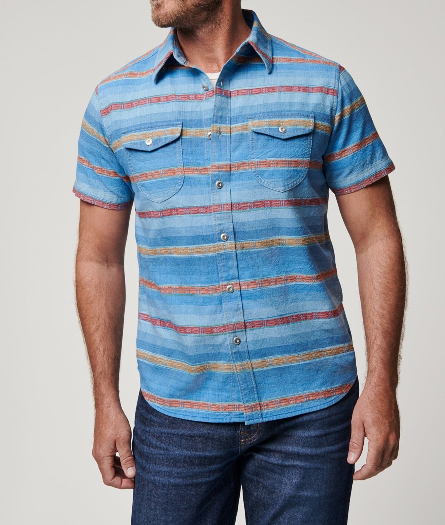 - Design: Auffälliges, mehrfarbiges Streifenmuster verleiht dem Hemd einen frischen, dynamischen Look.