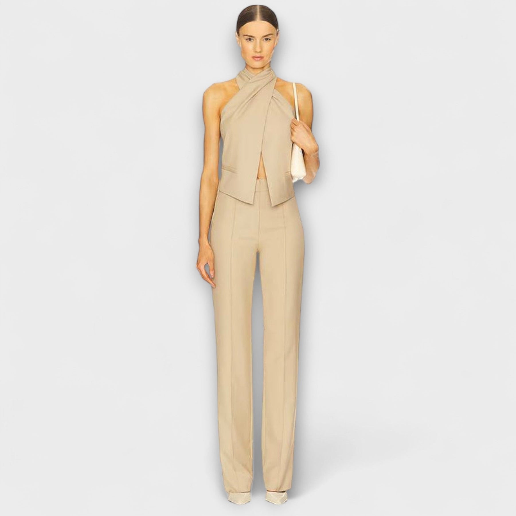 - Chice Cross Halter Neckline: Verleiht Ihrer Erscheinung Struktur und einen zeitgemäßen Akzent.