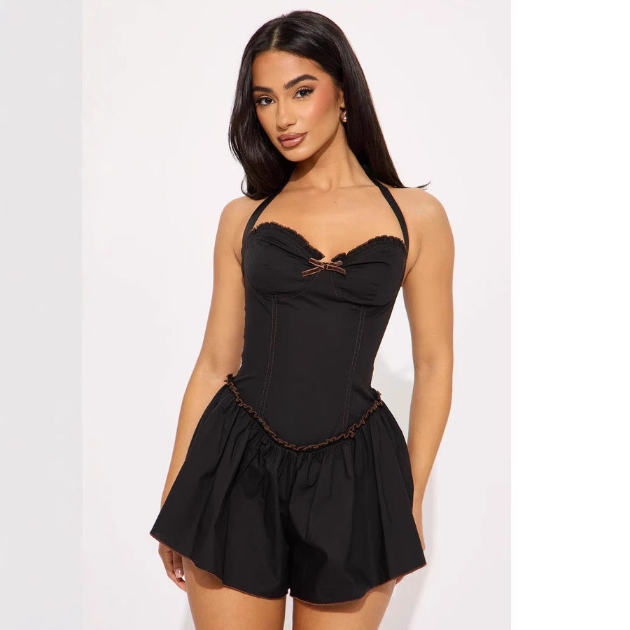 Der einzigartige Korsett-Look formt die Taille und schafft eine schmeichelhafte Silhouette, die Ihre natürliche Form betont. Der weiche, schwingende Rock sorgt für eine elegante Bewegung und stellt sicher, dass Sie sich sowohl selbstbewusst als auch stilvoll fühlen. Egal, ob Sie sich entspannen oder ins Wasser springen, dieser Badeanzug bietet einen zeitlosen Charme, der nicht unbemerkt bleibt.