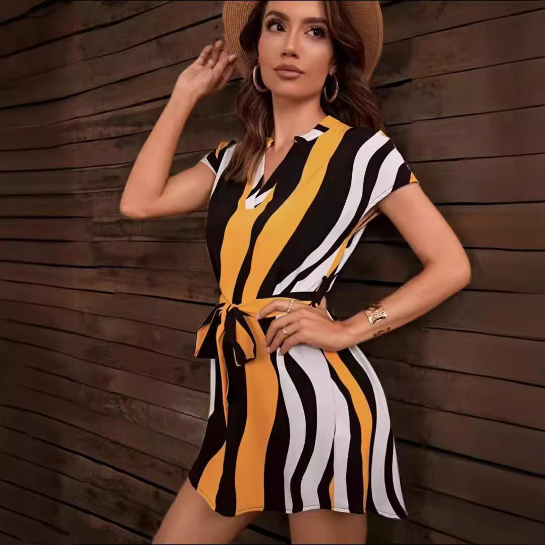 Entwickelt für Komfort und Bewegungsfreiheit ist dieses gestreifte Midikleid dein neuer Favorit für wärmere Tage. Egal, ob du über einen lokalen Markt schlenderst oder auf dem Weg zu einer Gartenparty bist, hält der lässige Schnitt und der atmungsaktive Stoff dich kühl und stilvoll. Kombiniere es mit Sandalen und einem Sonnenhut für einen mühelosen Look – oder styliere es mit Keilabsätzen und Accessoires für einen eleganteren Auftritt.