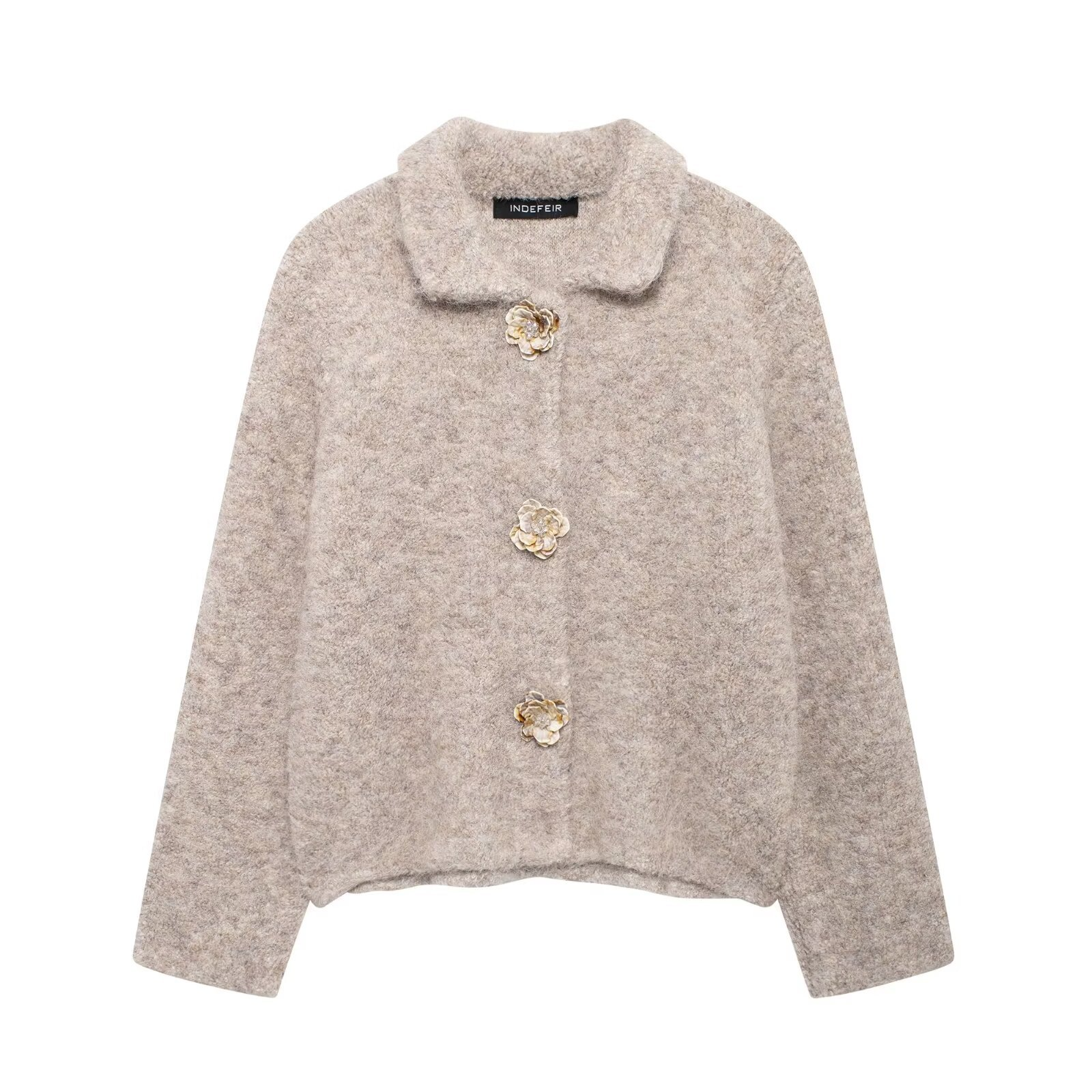 Unser „European And American Style Fashionable All-match Flower-shaped Decorated Row Button Knitted Coat“ vereint klassische Eleganz mit zeitgemäßem Design. Der Mantel überzeugt durch seine hochwertige Verarbeitung, angenehme Passform und die liebevoll gestalteten Blumen-Details. Perfekt für jede Gelegenheit, verleiht er jedem Outfit einen modischen Akzent. Die dekorativen Reihenknöpfe betonen den trendigen Look und sorgen für ein harmonisches Gesamtbild. Erleben Sie zeitlose Mode und außergewöhnlichen Tragekomfort in einem.