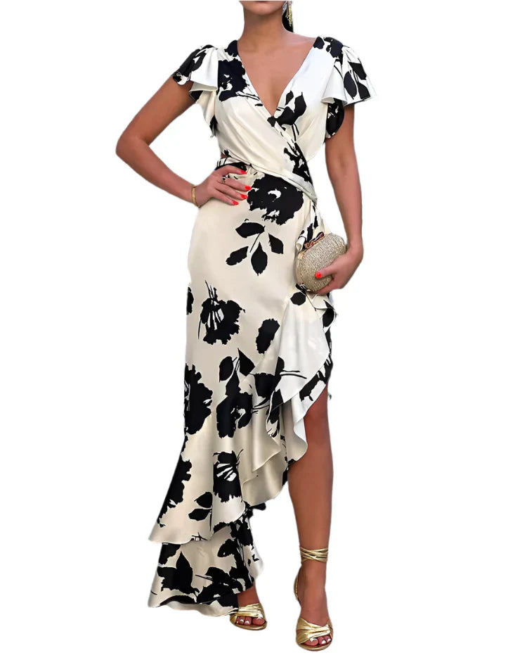 Ziehe die Blicke mit Marcy an - Druckkleid mit V-Ausschnitt und Rüschärmeln, ein feminines Statement-Kleid, das verspielte Muster mit elegantem Design kombiniert. Egal, ob du mit Freundinnen zum Mittagessen gehst oder einen entspannten Tag draußen verbringst, dieses Kleid bietet dir Komfort und Stil in einem.