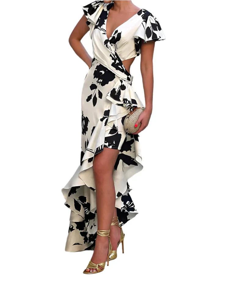 Marcy - Bedrucktes Kleid mit V-Ausschnitt und Rüschärmeln
