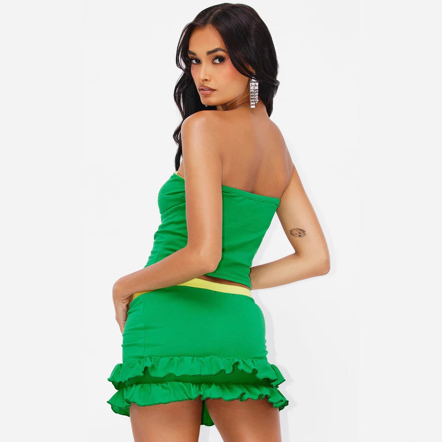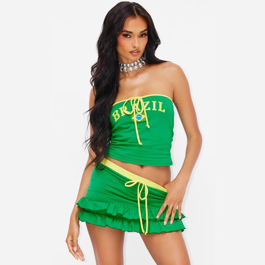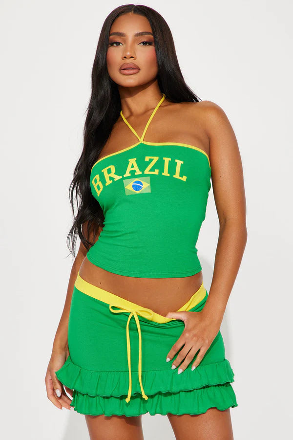 Fang die Energie des Sommers mit Marina - Rio Rüschentop- und Unterrock-Duo. Dieses farbenfrohe Zweiteiler-Set ist inspiriert von der lebhaften Atmosphäre Brasiliens und verleiht deiner Garderobe einen festlichen und femininen Touch. Das kurze Top und der passende Rock sind mit verspielten Rüschen verziert, die in jedem Schritt Bewegung und Eleganz erzeugen.