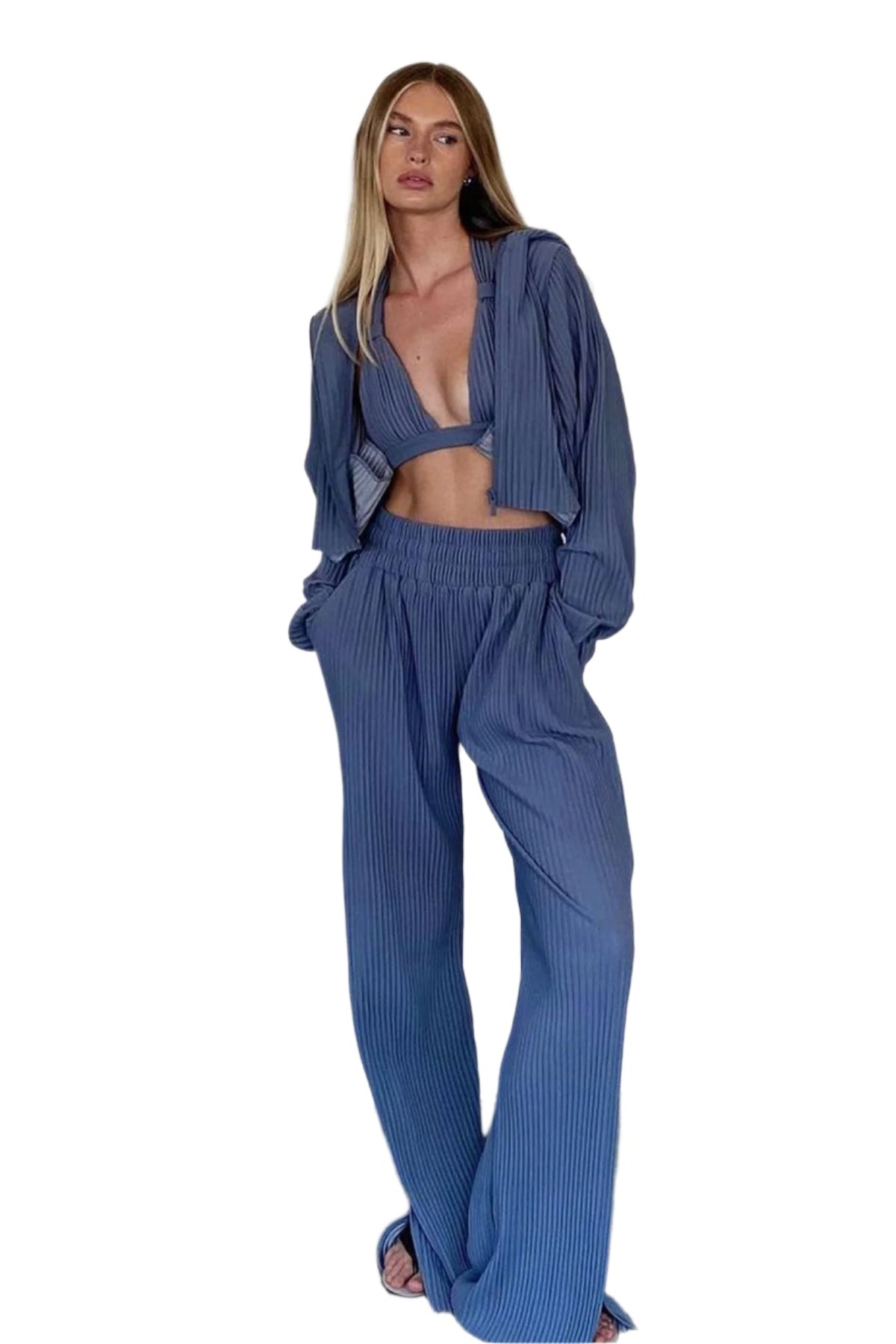 Bleibe stylisch und komfortabel von morgens bis abends mit dem Melissa - Lässiges 3-teiliges Set. Dieses koordinierte 3-teilige Outfit umfasst ein ärmelloses Top, einen lässigen Hoodie und passende Hosen – entworfen, um einen mühelosen Lagenlook zu kreieren. Egal, ob du zu Hause entspannst, Besorgungen machst oder dich mit Freunden triffst, dieses Set lässt dich unbeschwert gut gekleidet aussehen.