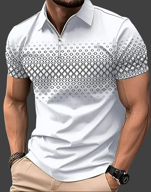 Dieses Polohemd mit Rautenmuster vereint klassische Eleganz mit modernem Stil. Das atmungsaktive Material sorgt für ein angenehmes Tragegefühl, ideal für warme Frühlingstage und laue Sommerabende. Mit seinem markanten Muster setzt es modische Akzente und passt sowohl zu Jeans als auch zu Chinos. Der bequeme Schnitt bietet uneingeschränkte Bewegungsfreiheit und verleiht jedem Look eine edle Note.