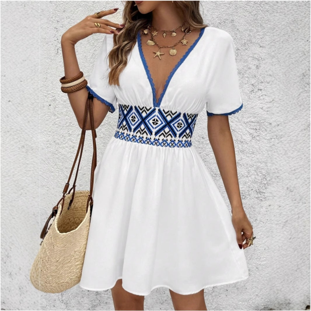 Tauchen Sie ein in zeitlose Anmut mit dem Rihayda - V-Ausschnitt Spitzenkleid in Weiß. Dieses feine Spitzenkleid vereint Femininität mit einem Hauch von Vintage-Eleganz – perfekt für Frühlingsfeiern oder entspannte Gartenanlässe. Die sanfte weiße Farbe schmeichelt allen Hauttönen, während der elegante V-Ausschnitt einen Hauch von Raffinesse hinzufügt. Ob Sie es mit Sandalen oder hohen Schuhen tragen, verwandelt dieses Kleid jeden Moment in etwas Besonderes.