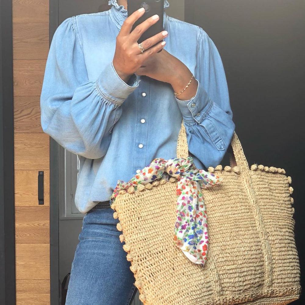 Suchen Sie nach einer Bluse, die den lässigen Denim-Look mit einer romantischen Note verbindet?